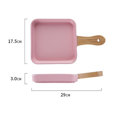 Bắc Âu Sáng Tạo Tráng Men Gốm Vuông Món Ăn Phương Tây Với Tay Cầm Bằng Gỗ Ăn Sáng Tấm Gia Dụng Bộ Đồ Ăn Món Ăn Tấm Bít Tết